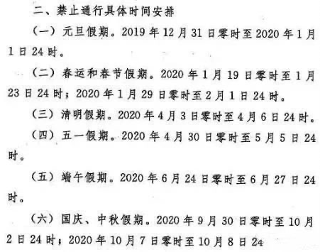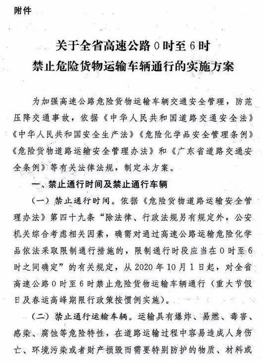 全年常规:自2020年10月1日起,对全省高速公路0时至6时禁止危险货物运输车辆通行
