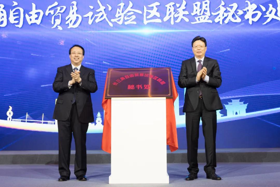 长三角自由贸易试验区联盟成立大会10日在沪举行。上海市委副书记、市长龚正,商务部党组副书记、国际贸易谈判代表兼副部长俞建华出席,并共同为联盟秘书处揭牌。江苏省副省长惠建林、浙江省副省长朱从玖、安徽省副省长章曦出席。上海市委常委、常务副市长陈寅主持,市委常委、浦东新区区委书记、上海自贸试验区管委会主任翁祖亮致辞。沪苏浙皖自贸试验区代表签署联盟协议。