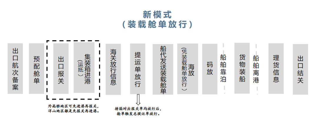根据上海海关通知,上海海运货物出口放行信息的发送环节将进行调整:洋山地区2021年11月15日进行调整;外高桥地区2021年11月22日进行调整,新调整的海关放行信息将在装载舱单发送成功后给予码头;装载舱单由船代(舱单传输人)统一发送,发通的前提条件为有提运单放行。
