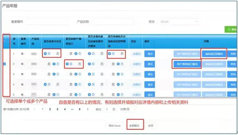 在完成上述“产品四问”,确定产品合规且后续需继续生产、进口和销售的,填报相关记录并保存,则操作“提交”年度报告,等待进一步确认后即可完成年报。