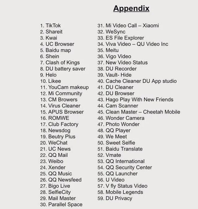 《经济时报》称,这份尚未公布的名单包括此前“逃过一劫”的腾讯游戏绝地求生国际版、字节跳动于今年3月发布的独立音乐流媒体应用Resso,小米的短视频应用Zili以及阿里巴巴集团的全球速卖通等。